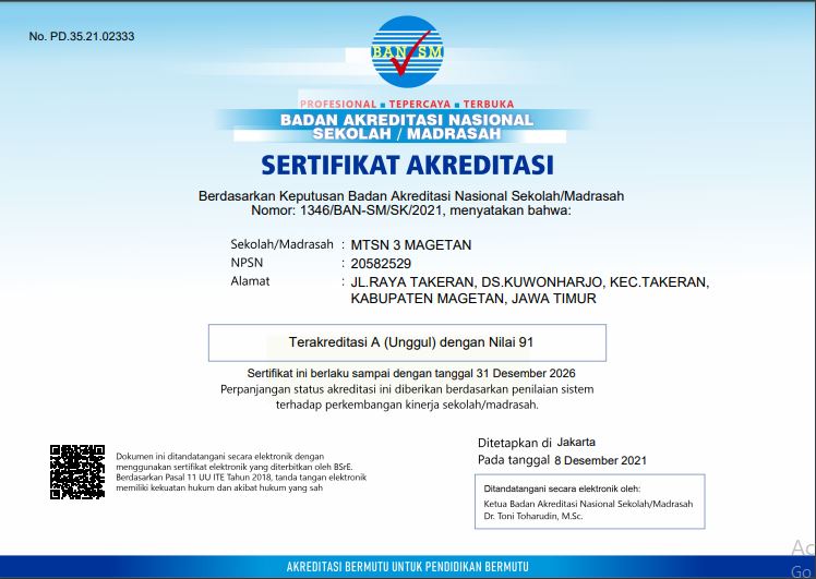 Nama Madrasah : Madrasah Tsanawiyah Negeri 3 Magetan